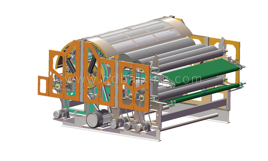 億百興公司自主研發八米寬無膠棉烘箱出嫁渭南大荔!優點:節能(生產成本降低38%)高產(時產無膠棉1000公斤)缺點:運輸費用高(一車拉兩節)